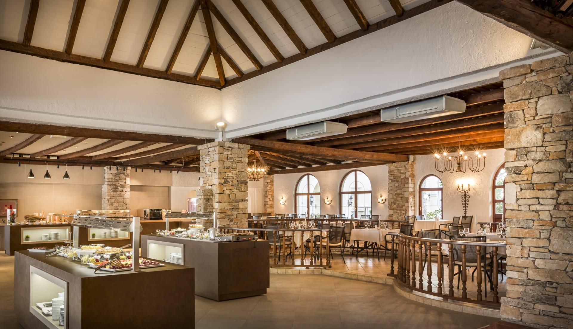 Restoran hotela nudi bogat izbor jela domaće i internacionalne kuhinje, uz panoramski pogled na Rovinj. Plaža, udaljena svega 50 metara, šljunkovita je i betonirana, sa Plavom zastavicom i mogućnošću iznajmljivanja ležaljki i suncobrana.